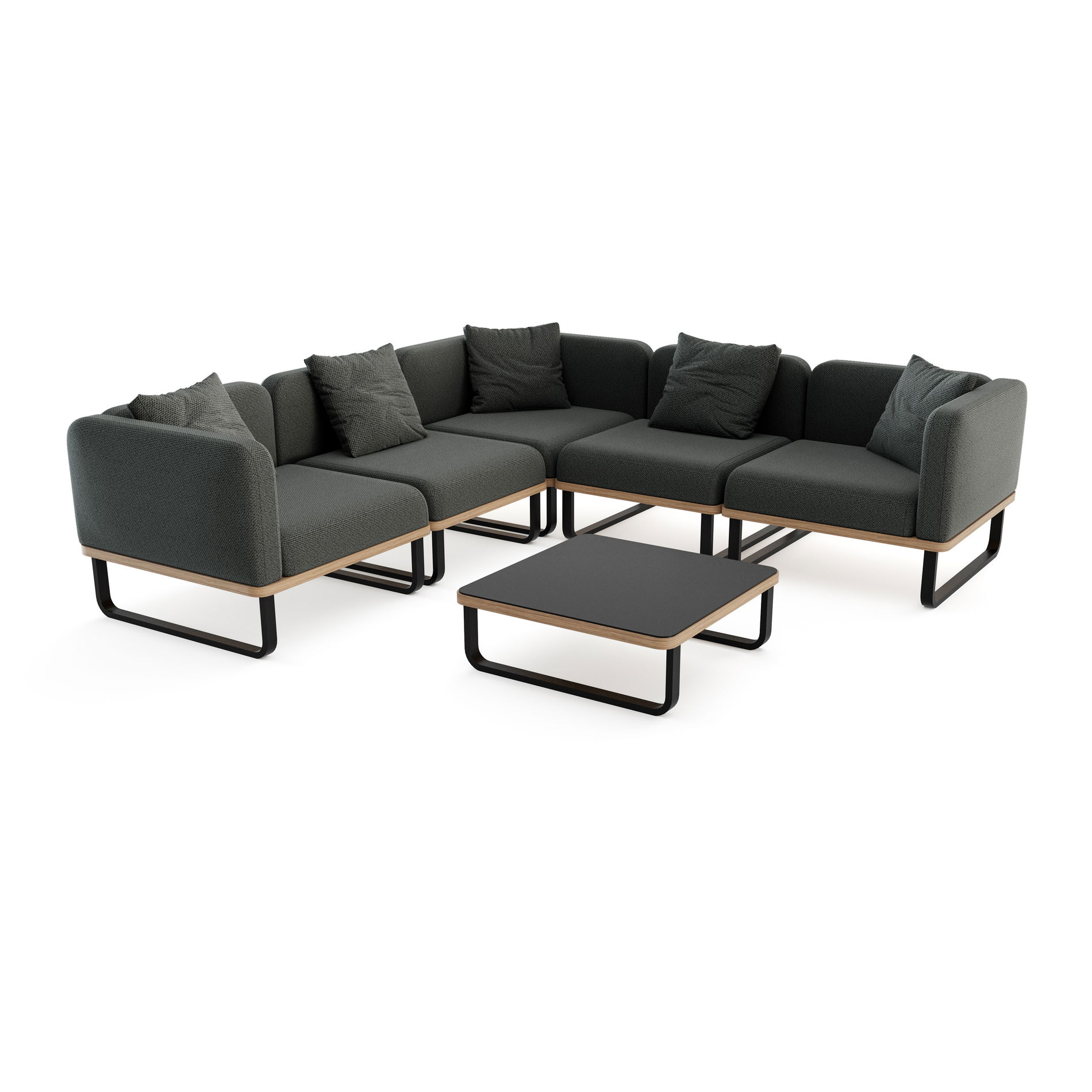 Die Solera Lounge Light ist die stilvolle Antwort auf moderne Ansprüche: kraftvolle Linien, klare Formen und eine elegante Materialkombination aus pulverbeschichtetem Aluminium mit Holzoptik und dunklen Polstern. Mit schlankeren Proportionen eignet sie sich perfekt für Terrassen oder kleinere Außenbereiche, ohne dabei auf Luxus und Komfort zu verzichten. Die wetterfesten Lehnen mit Quick Dry Foam sorgen für entspannte Stunden nach Regenschauern, während die dunklen Designakzente den markanten Charakter der Lounge unterstreichen. Trotz ihrer schlanken Bauweise vermittelt die Lounge ein Gefühl von Großzügigkeit und Statur und macht jeden Garten zum stilvollen Rückzugsort. Ideal für alle, die Exklusivität und starken Design-Charakter auch im kompakten Maßstab schätzen.
