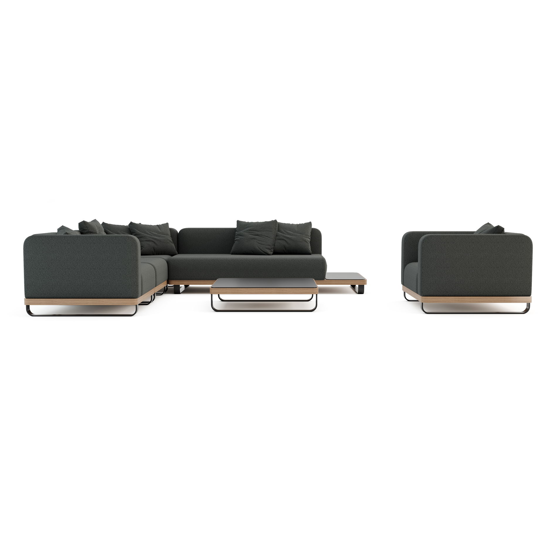 Das Solera Lounge Set L setzt mit seinen kraftvollen Formen und dem edlen Design neue Maßstäbe für moderne Gartenlounges. Die großzügigen 22,5 cm dicken Sitzkissen bieten hohen Komfort beim Zurücklehnen, während die Quick Dry Foam-Technologie für eine schnelle Einsatzbereitschaft nach einem Sommerregen sorgt. Mit seinen Dekokissen und der geschmackvollen Kombination aus pulverbeschichtetem Metallrahmen und Holzoptik wird der Garten zu einer luxuriösen Wohlfühloase. Die dunklen, attraktiven Designakzente setzen zusammen mit den klaren Linien einen klar definierten Charakter in Ihrem Garten. Das Solera Lounge Set L ist die perfekte Wahl für Gartenliebhaber, die ein Design suchen, das Stärke, Luxus und Exklusivität vereint.