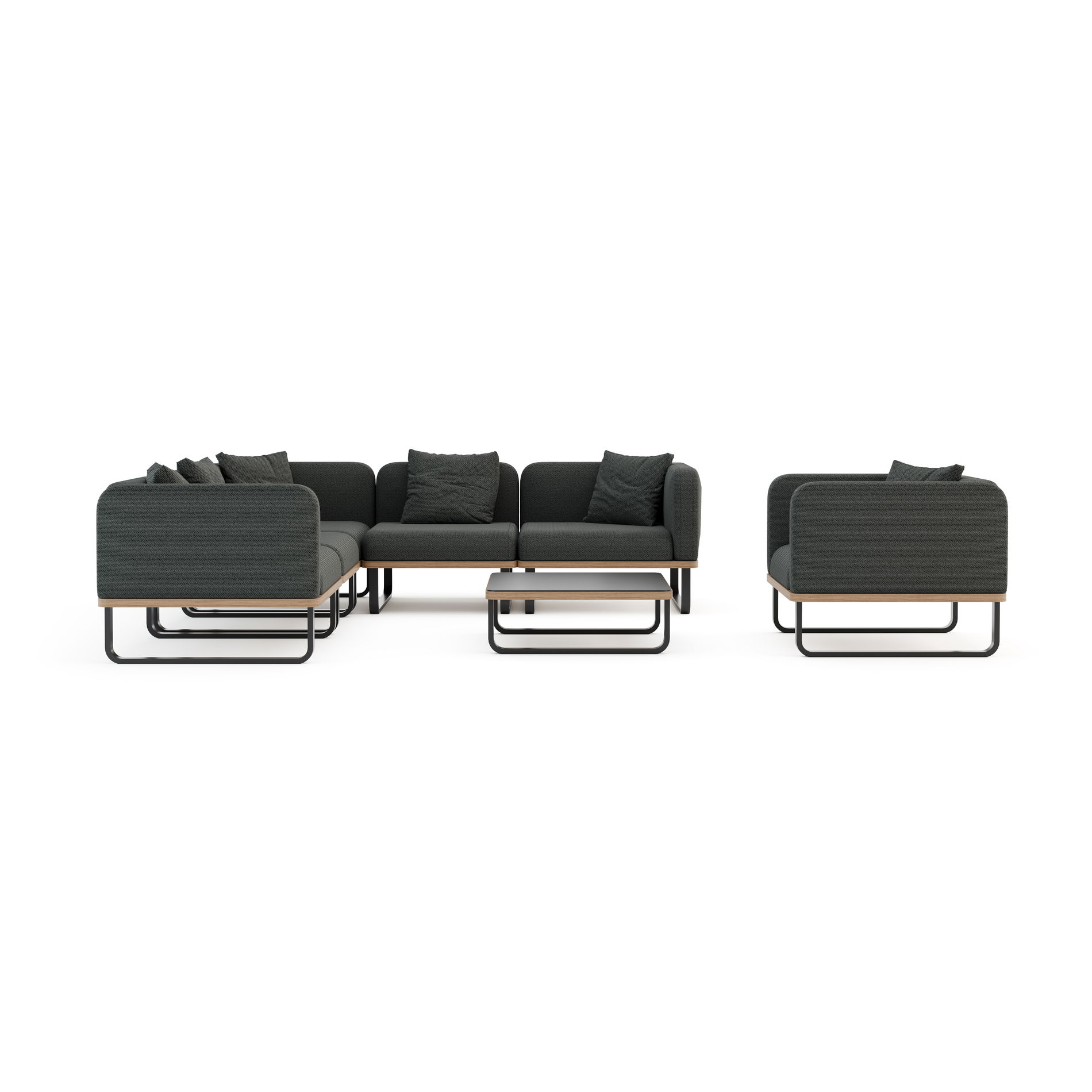 Die Solera Lounge Light Plus vereint markante Formen mit einer klaren, modernen Linienführung und wird so zum Mittelpunkt jeder stilvollen Außenbereiches. Mit ihrer kraftvollen Präsenz und den hochwertigen Polstern bietet sie exklusiven Komfort für entspannte Stunden unter freiem Himmel. Dank der Quick Dry Foam-Technologie in den Lehnen ist die Lounge auch nach einem Sommerregen schnell wieder einsatzbereit. Der dunkle, pulverbeschichtete Rahmen aus Aluminium in Kombination mit edlem Holzdekor verleiht dem Design eine unverwechselbare Ausdruckskraft – elegant, beständig und voller Charakter. Die Solera Lounge Light Plus richtet sich an alle, die ein kraftvolles Statement für ihren Außenbereich suchen.